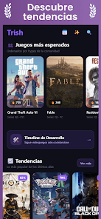 Além disso, Trish oferece recursos adicionais como batalhas para desbloquear colecionáveis, um calendário de lançamentos e um motor de recomendações personalizadas. A integração com um banco de dados abrangente permite explorar uma vasta gama de jogos, enquanto a sincronização local e na nuvem assegura que suas listas estejam sempre acessíveis, onde quer que você esteja.